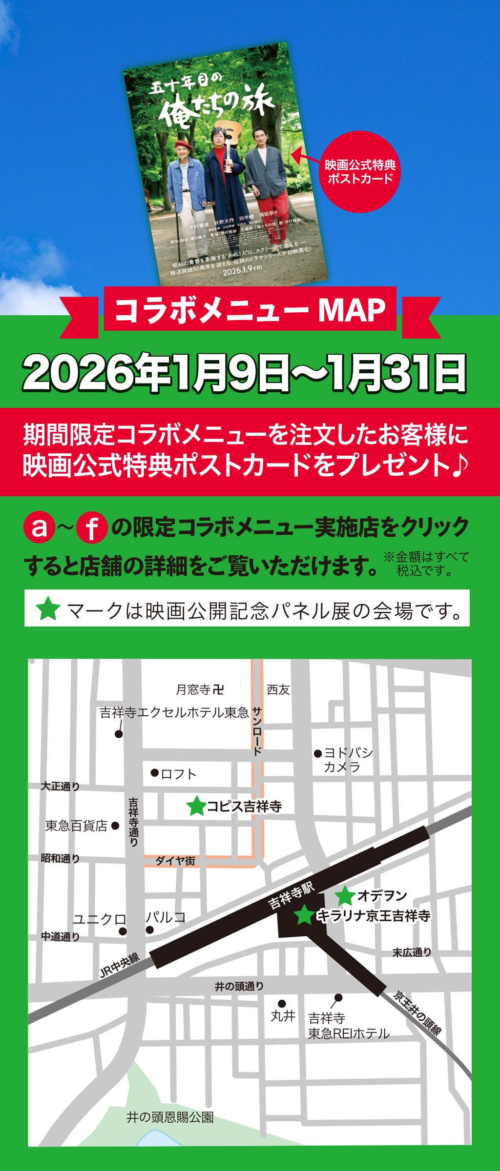1975年10月にスタートした連続ドラマ『俺たちの旅』。カースケ、オメダ、グズ六が繰り広げる熱い青春群像劇は、若者たちを熱狂させ、放送後も10年ごとに3本のスペシャルドラマが作られてきた。そして、放送開始50周年を迎えた今、続編『五十年目の俺たちの旅』が初の映画版として製作され、カースケたち3人の物語が初めて銀幕に登場する。カースケを演じるのは中村雅俊。今回も主題歌「俺たちの旅」はじめ、挿入歌も務める。グズ六役に秋野太作、オメダ役に田中健、さらにオメダの妹・真弓役に岡田奈々と50年前のオリジナルキャストが結集した。
